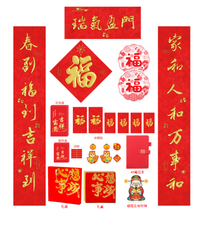 福字:31x31cm(丝绸烫金) 财神:10x15cm(350g白卡纸)