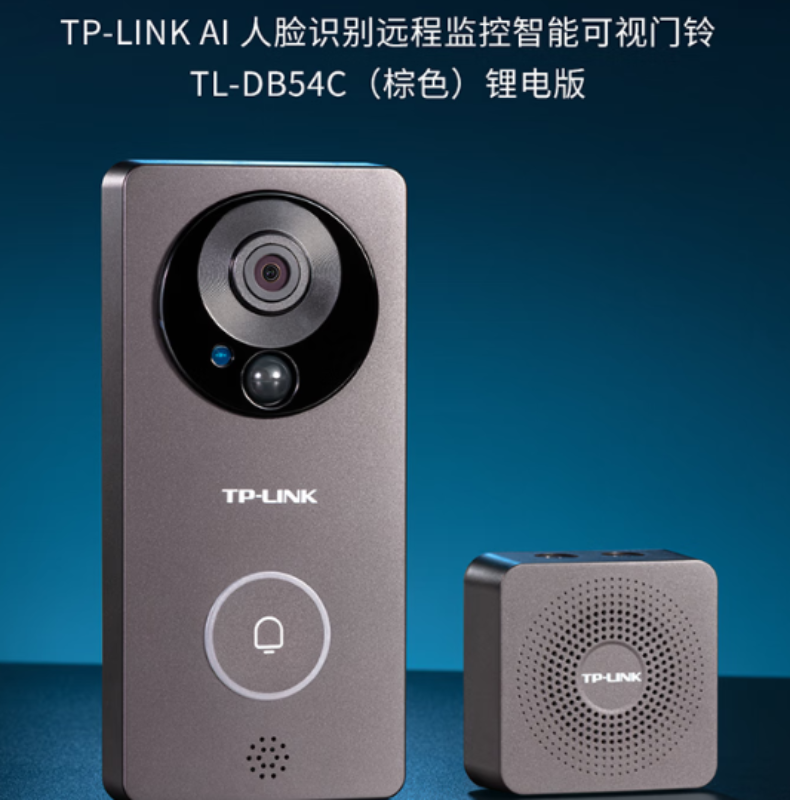 > 普联(TP-LINK) 可视门铃监控2.5K分辨率 智能猫眼门口摄像头免插电 无线wifi手机远程通话400万超清夜视 DB54C