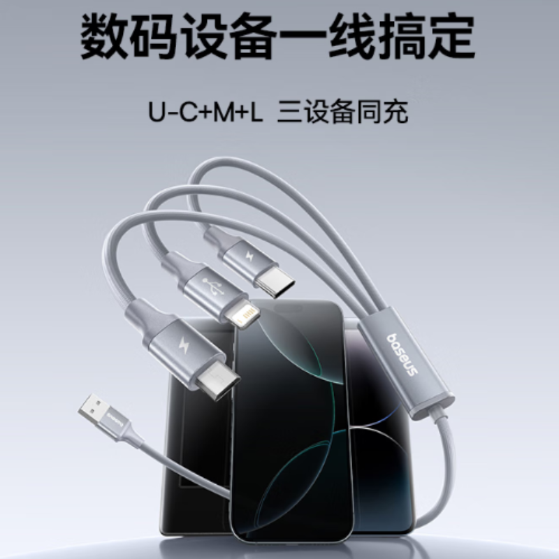 商品名称:倍思苹果数据线三合一苹果Type-c安卓手机充电线3.5A一拖三适用iPhone17/16小米华为荣耀三星