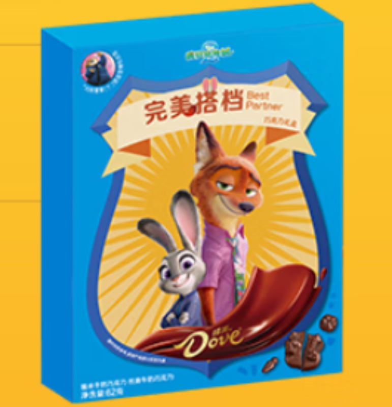 商品名称:德芙疯狂动物城 完美搭档巧克力 礼盒62g 休闲零食糖果 生日礼物