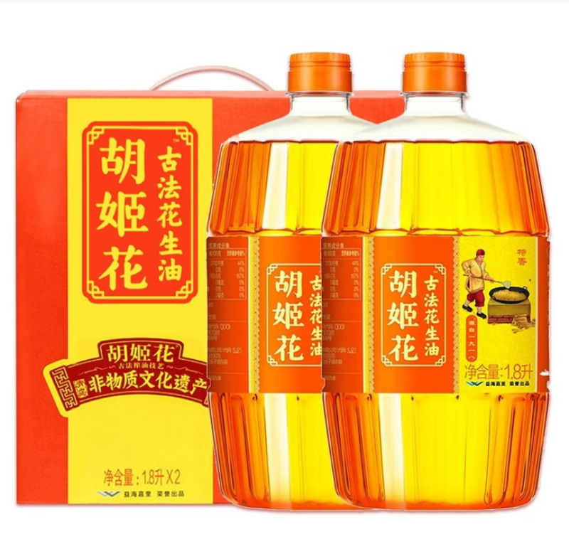 商品名称:胡姬花食用油【保真花生油】压榨 古法花生油1.8L*2 精选礼盒