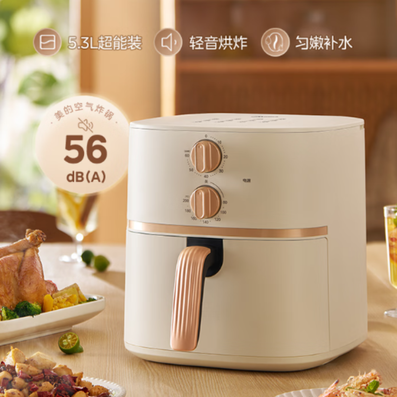 商品名称:美的(Midea)空气炸锅免翻面易用双旋钮 家用实用大容量5.3L 多功能空气炸锅蒸烤一体 金属内腔 MF-KZE535J5