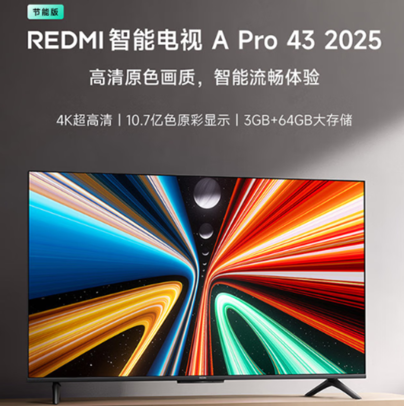 商品名称:小米(MI)REDMI电视43英寸 3+64GB 4K超高清电视机 A Pro 43 2025 节能版 L43RB-APE二级能效 家电