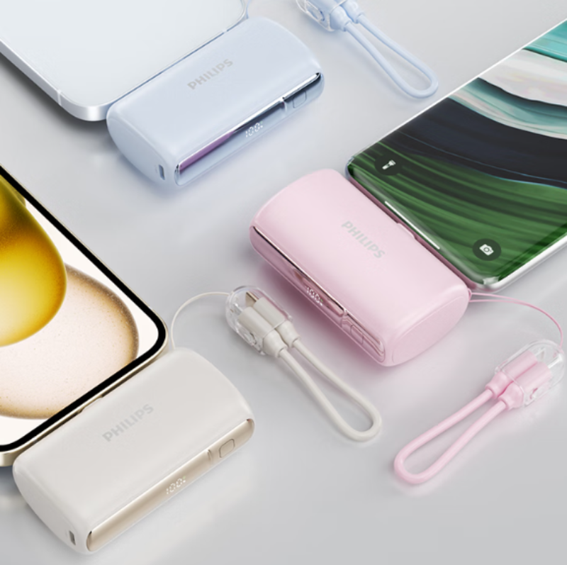 > 飞利浦(PHILIPS)【3C认证】充电宝自带线10000毫安时22.5W快充带数显胶囊移动电源小巧便携尾插Type-C接口