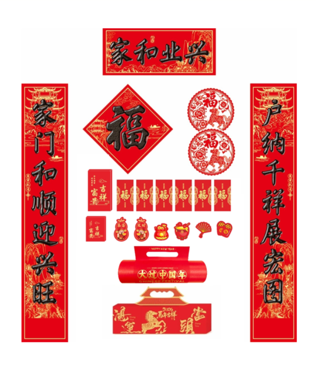 对联:118x21cm(157g书法红烫黑) 横批:50x21cm(157g书法红烫黑)
