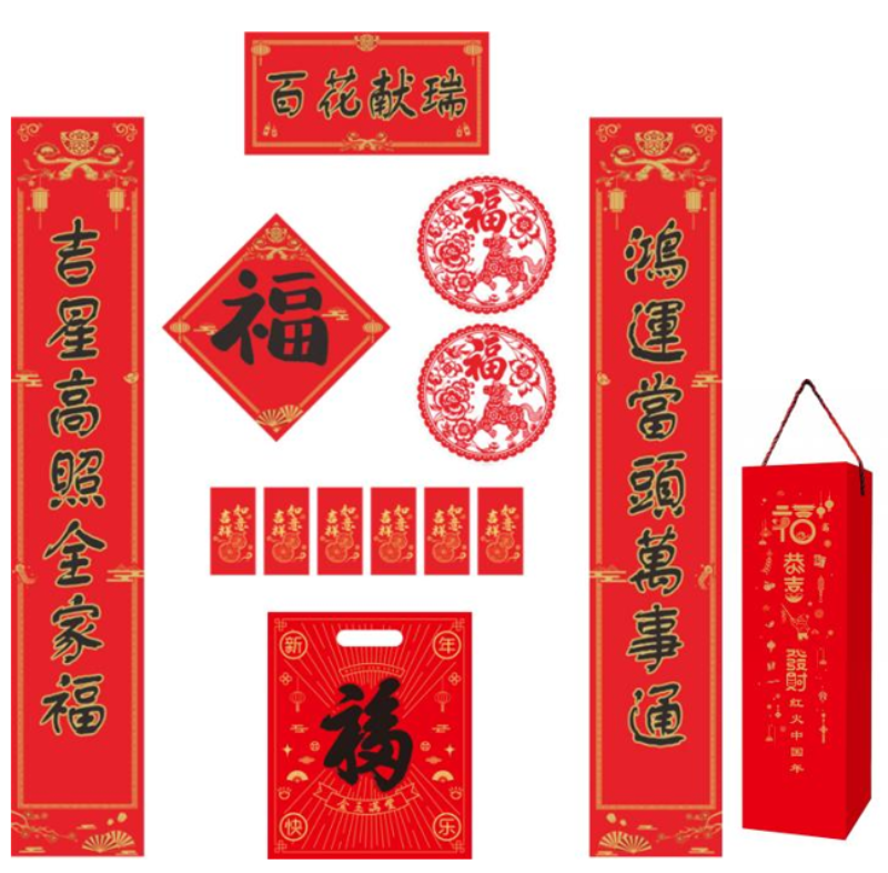 商品名称:百花献瑞-1.18米铜板纸四色印刷对联套装