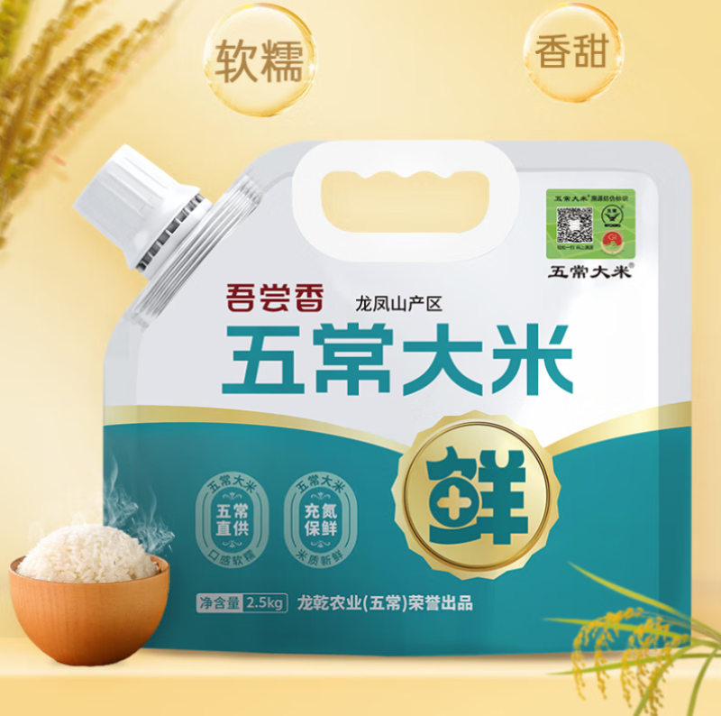 商品名称:五常大米 官方溯源 吾尝香 原粮稻花香2号 绿色食品 东北大米 5斤