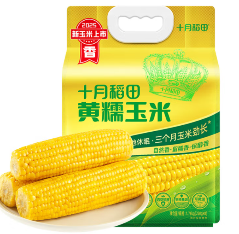 商品名称:十月稻田 黄糯玉米 3.52斤(220g*8根) 杂粮粗粮