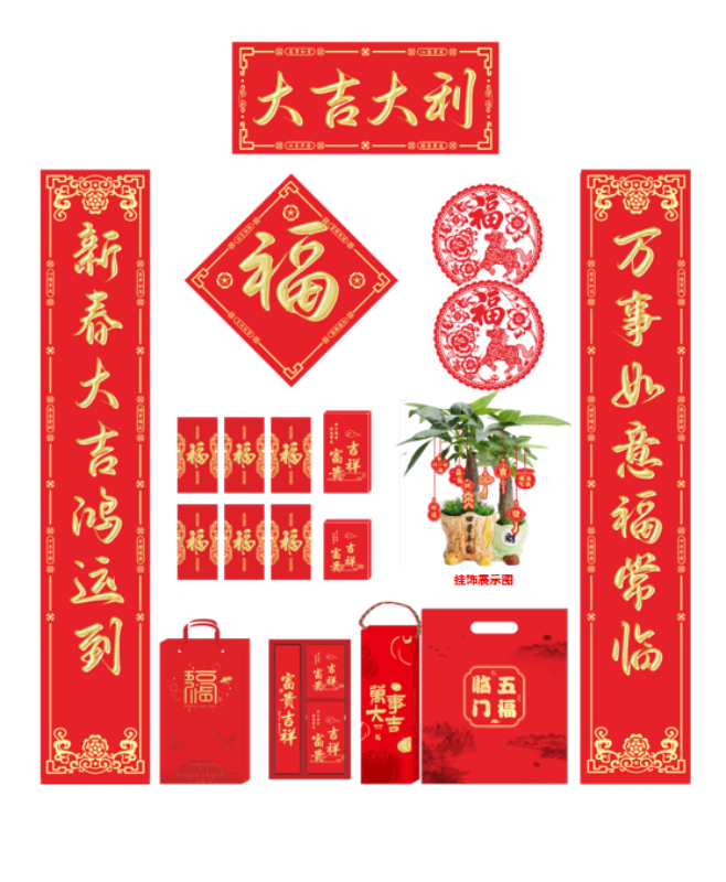 对联:118x21cm(157g书法红烫金) 横批:50x21cm(157g书法红烫金)
