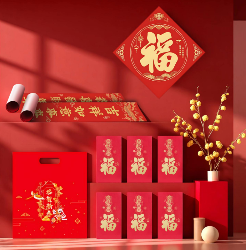 福 字 1 张:35X35cm 130克铜版纸,特殊高档仿绒新工艺中国红