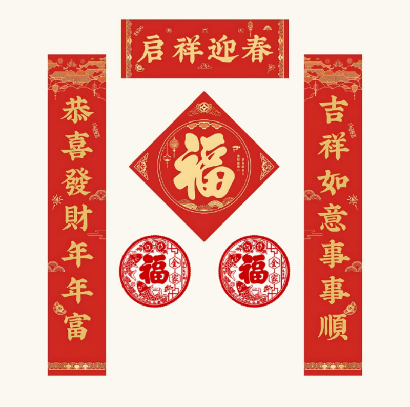 对 联 1 幅:118X21cm 130克铜版纸,特殊高档仿绒新工艺中国红