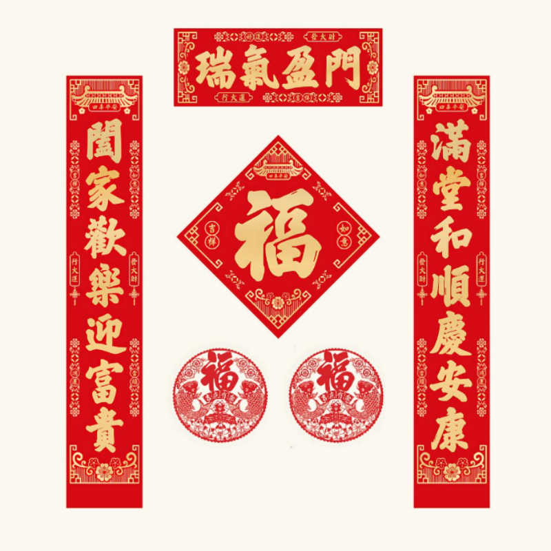 福 字 1 张:35X35cm 200克双铜纸四色印刷浮雕烫金